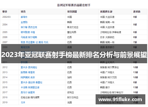 综上所述,2023年亚冠联赛射手榜的排名不仅受到球员个人能力的影响,还与球队的战术部署、比赛节奏等多种因素息息相关。从目前的情况来看,领先者们的稳定表现值得称道,但也有不少新兴球员崭露头角,给射手榜带来了更多的不确定性。未来,随着赛事的深入,射手榜的变化将会更加剧烈,球迷们有理由期待更多精彩的进球与戏剧性的排名反转。