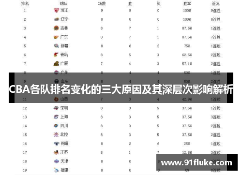 随着CBA赛季的进行,各支球队的排名变化呈现出许多波动和差异。各队的胜负、人员调整以及战术变化都在一定程度上影响了赛季的进程与最终排名。在CBA这个高水平竞技平台中,球队之间的差距往往决定了最终成绩,而这种差距又受到多个因素的共同影响。本篇文章将从三大方面对CBA各队排名变化的原因进行分析,并探讨这些变化的深层次影响。从球队人员结构、教练战术调整、外援引进与发挥等多个角度来进行详细阐述,分析各支球队排名波动的根本原因,以及这些变化对整个联赛的长期发展产生的深远影响。通过这些分析,希望为CBA球迷与业内人士提供更多的视角和启示。